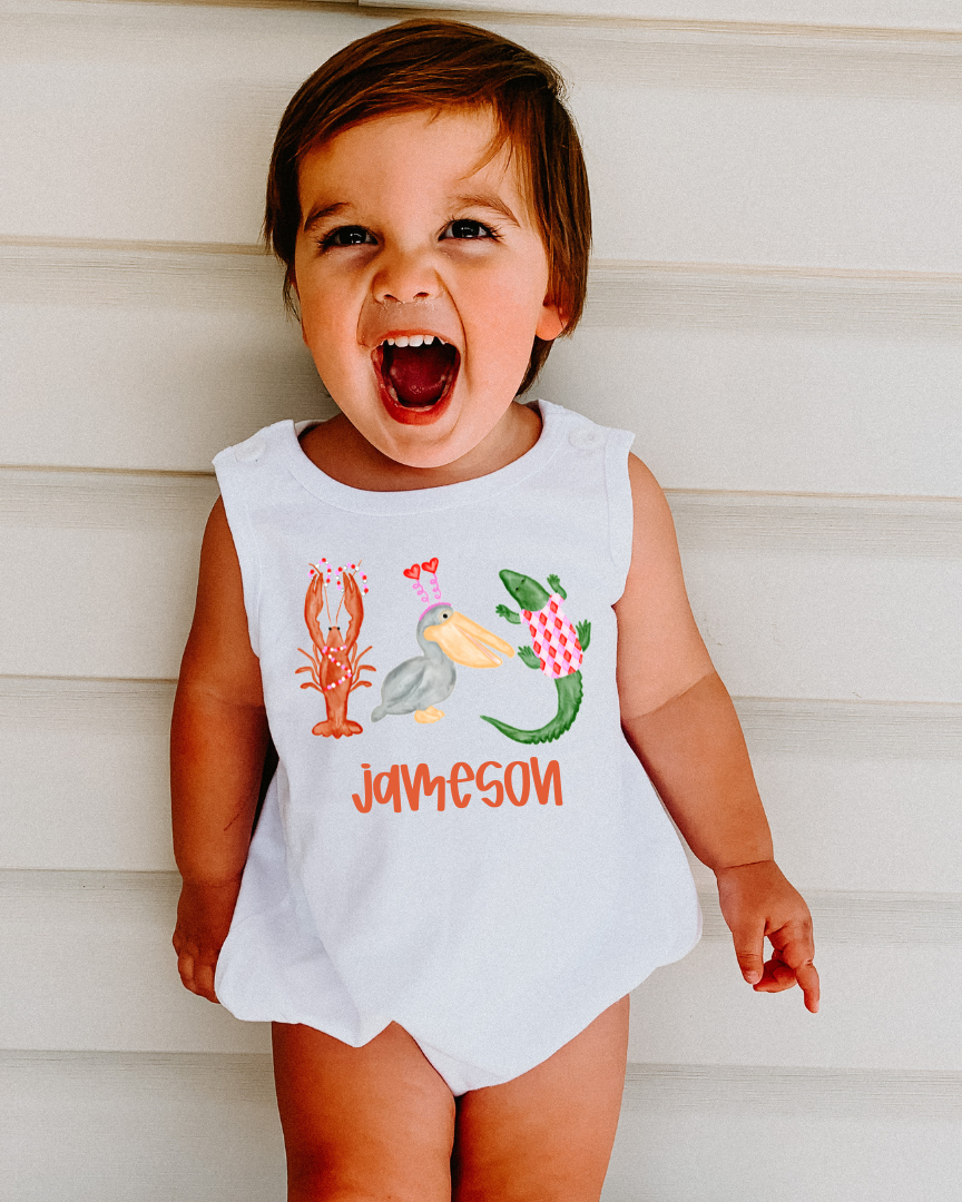 Name/phrase is customizable. Bubble option is a unisex sleeveless bubble! For short sleeve or ruffle bubbles, please email shorelysouthernms@gmail.com to order, as quantities are extremely limited!